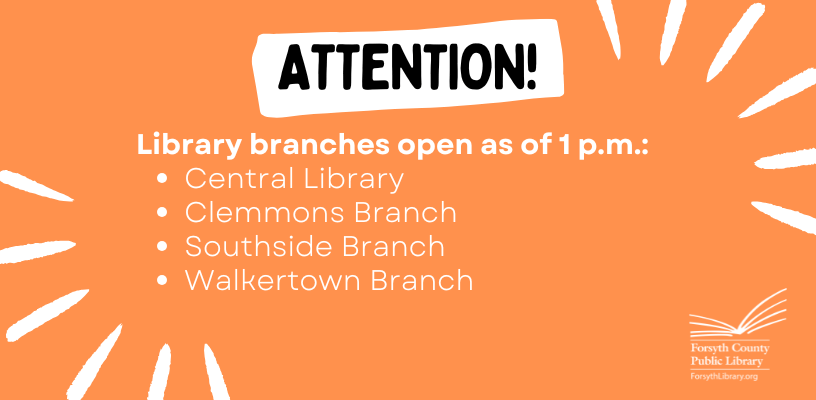 Four Forsyth County Public Library branches opened at 1 p.m.:
